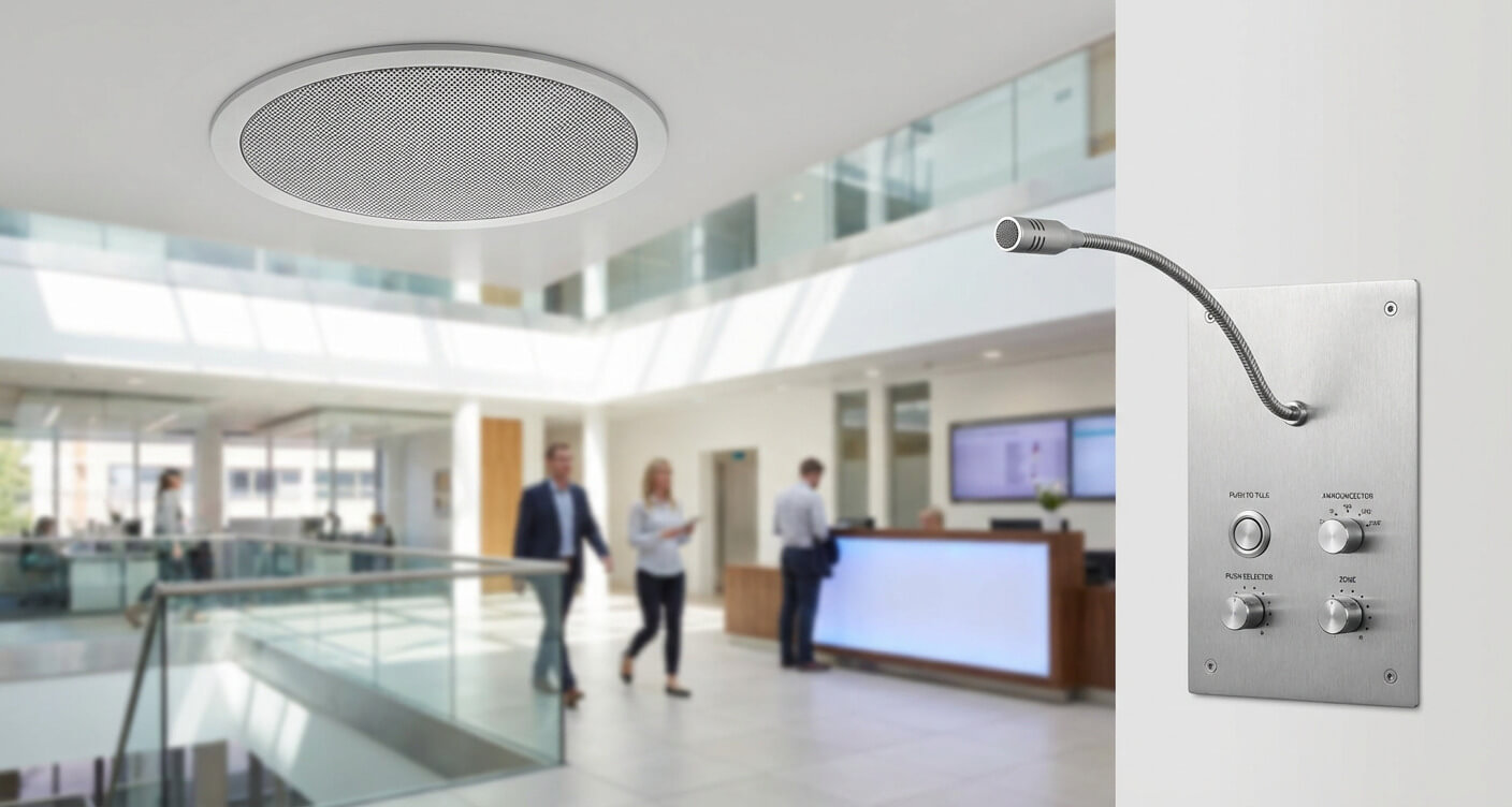 İlkay Bilişim & Güvenlik Sistemleri; okul, fabrika, iş yeri, AVM ve toplu yaşam alanları için profesyonel seslendirme ve anons sistemleri kurulum hizmeti sunmaktadır. Etkin iletişim ve acil durum bilgilendirmesi için yüksek kaliteli çözümler sağlıyoruz.