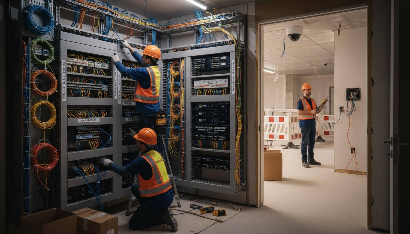 Kurulum sürecinde veri kablolama, network switch ve router kurulumu, erişim noktaları, kablosuz ağ altyapısı, IP kamera ve telefon sistemleri uzman ekibimiz tarafından birbirleriyle kusursuz şekilde entegre edilir. Kurulan tüm altyapı sistemleri, yüksek performans ve güvenilirlik için uçtan uca test edilir ve optimize edilir. Amacımız, tesislerinizin güvenli, hızlı ve kesintisiz veri iletişimi ile çalışmasını sağlamak ve uzun ömürlü bir altyapı sunmaktır. Kurumsal zayıf akım ve bilişim çözümlerimiz hakkında daha detaylı bilgi almak için Hakkımızda sayfamızı inceleyebilir, hızlı ve ücretsiz keşif için bizimle hemen iletişime geçebilirsiniz.